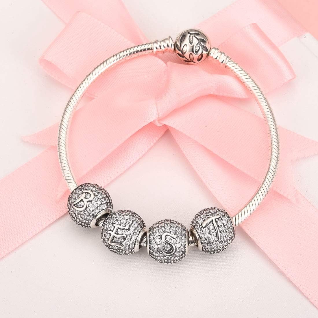 Silver colour alphabet letter charm personalised name bracelet jewellery making.